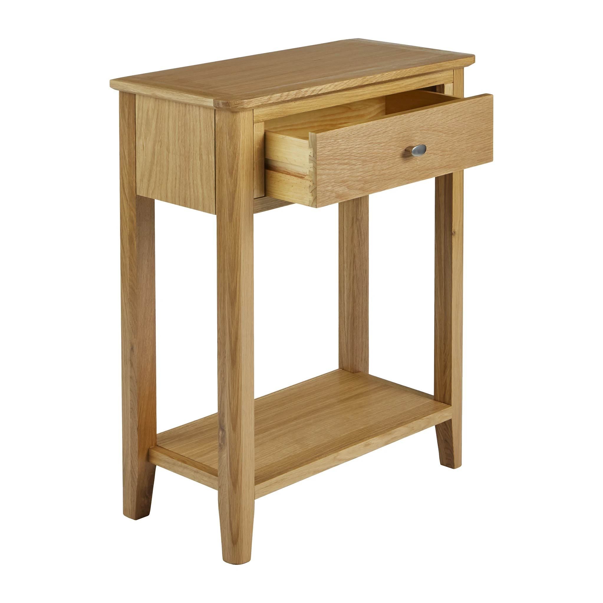A smaller version of the Alba console table, the Alba Telephone table makes an attractive addition to any number of rooms in the home. The drawer provide a valuable and practical storage space, while the flat top area makes a great space to display treasured photos or a vase of freshly cut flowers. The simple, contemporary design that echoes throughout the Alba range means that these pieces blend in with many interior design schemes.