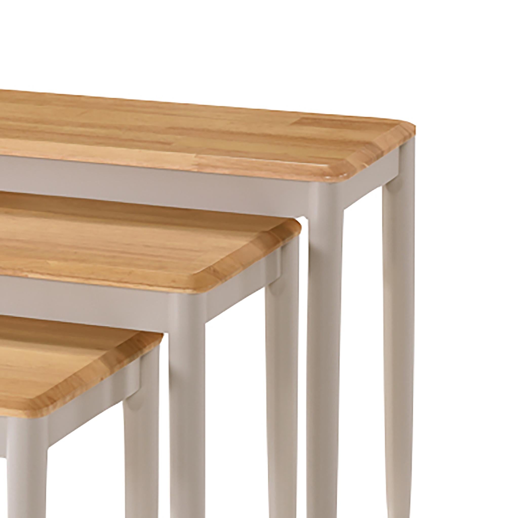 • Lovely Soft Grey Painted Finish with Solid Oak Tops.