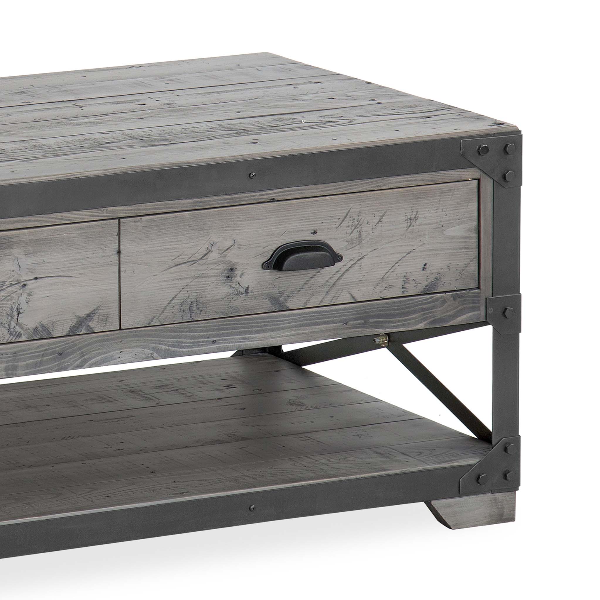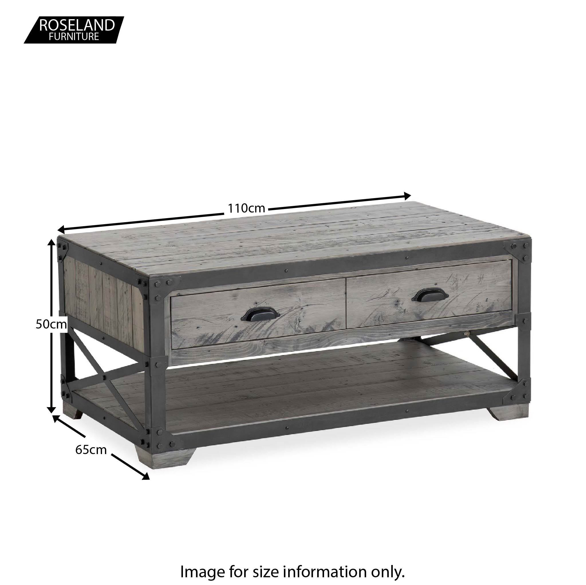 A stunning example of the Brooklyn range, the Brooklyn Coffee Table with drawer will take pride of place in any living room. With its large drawer featuring 2 metal cup handles and lower shelf, this is a uniquely styled coffee table, it looks great, especially when it is combined with other items in the Brooklyn range to create a striking industrial living room.
