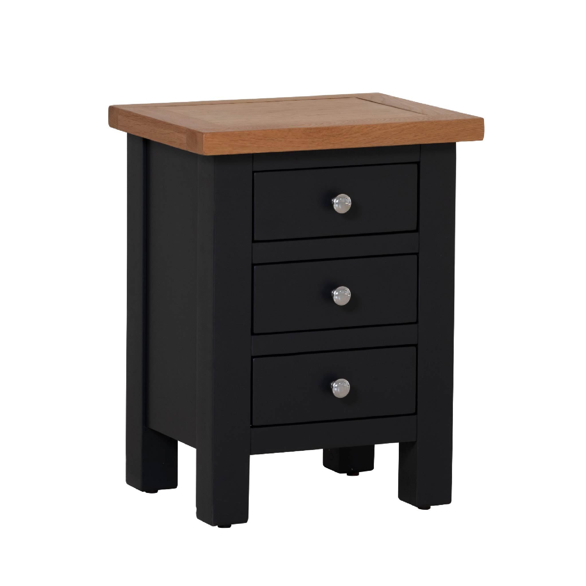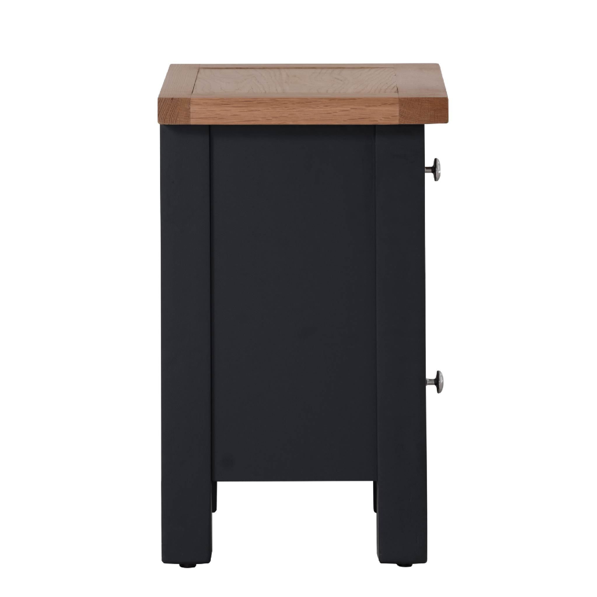 Charlestown Black is ideal for small spaces but will work in any room and has been built to an extremely high quality. Finished in a dramatic deep satin black topped with a golden solid oak top and round metal handles, these stunning pieces will add a touch of sophistication and class to your home!