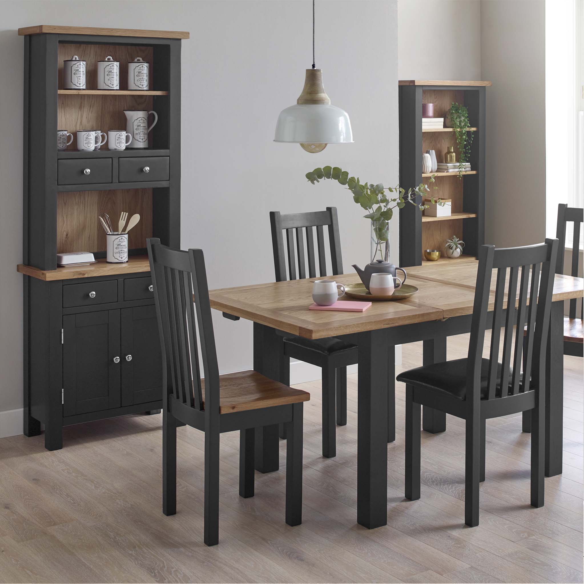 This Charlestown Black slatted backed dining chair with contoured wooden seating will look great when mixed and matched with any dining room furniture from the Charlestown collection.