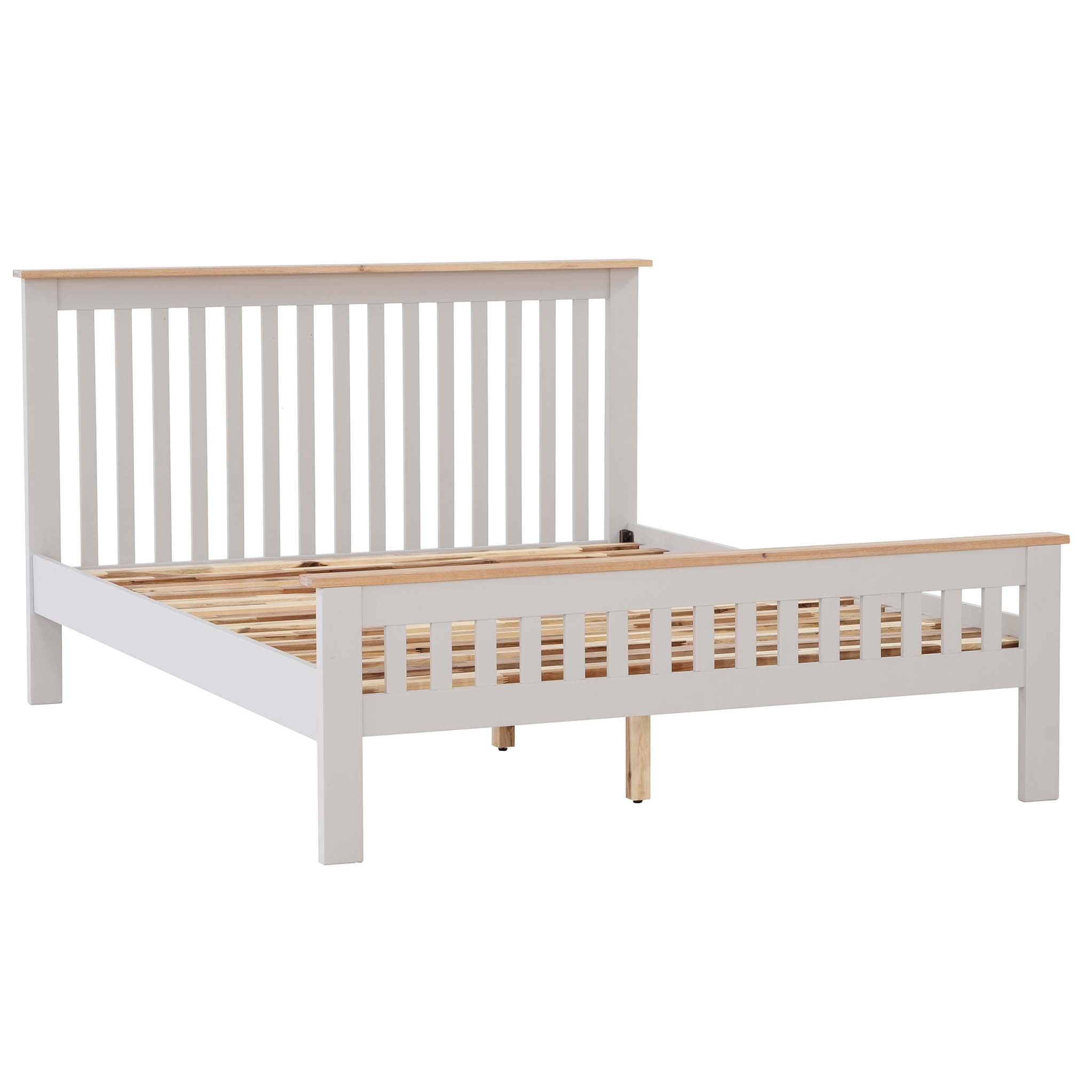Crafted from solid oak and solid wood, The Charlestown Grey Double Bed Frame will add a delightful centrepiece to your bedroom. The lacquered wooden frame has a clean design with a beautiful golden oak top on each end and an on-trend light grey base - perfect for creating that relaxing sleeping space!