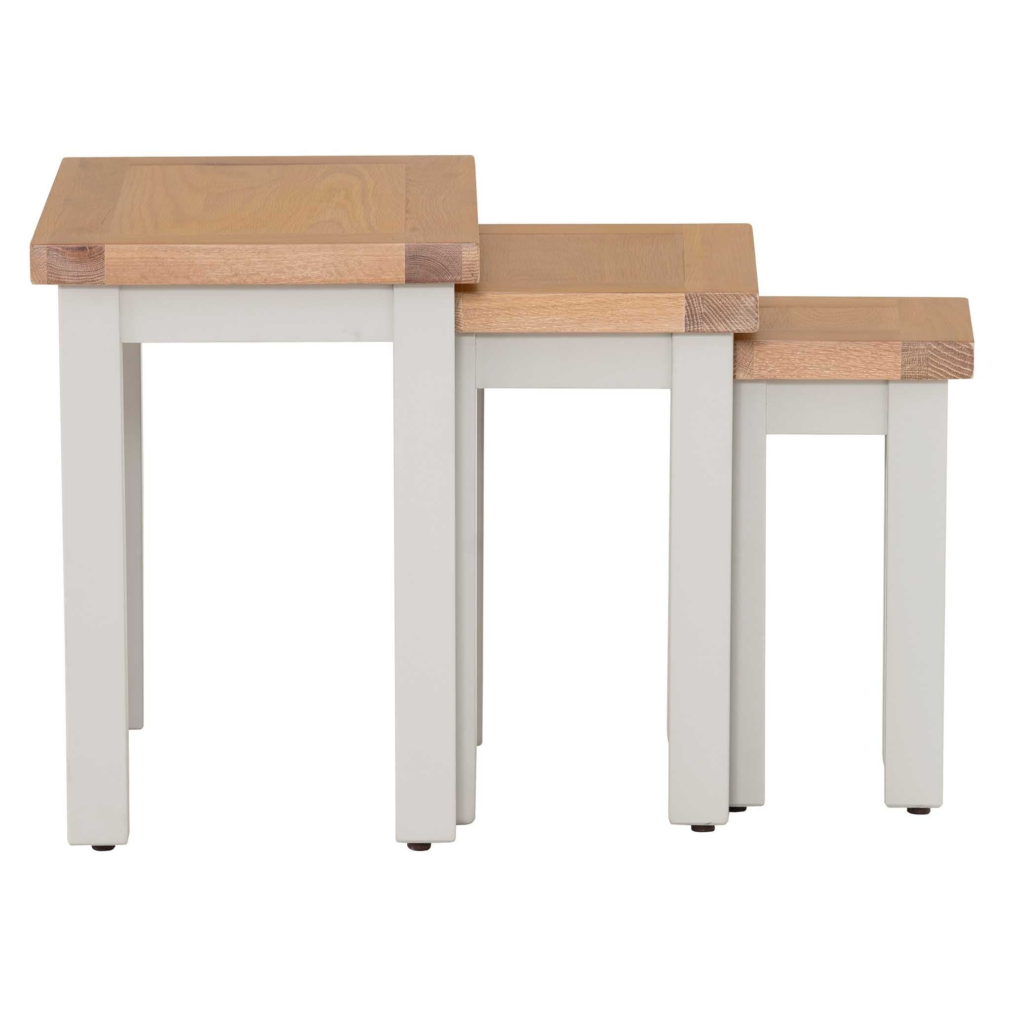 Crafted from solid oak and solid wood, the Charleston Grey nest of tables will add real quality to your home. The lacquered wooden frame has a clean design with a beautiful golden oak top and an on-trend light grey base.