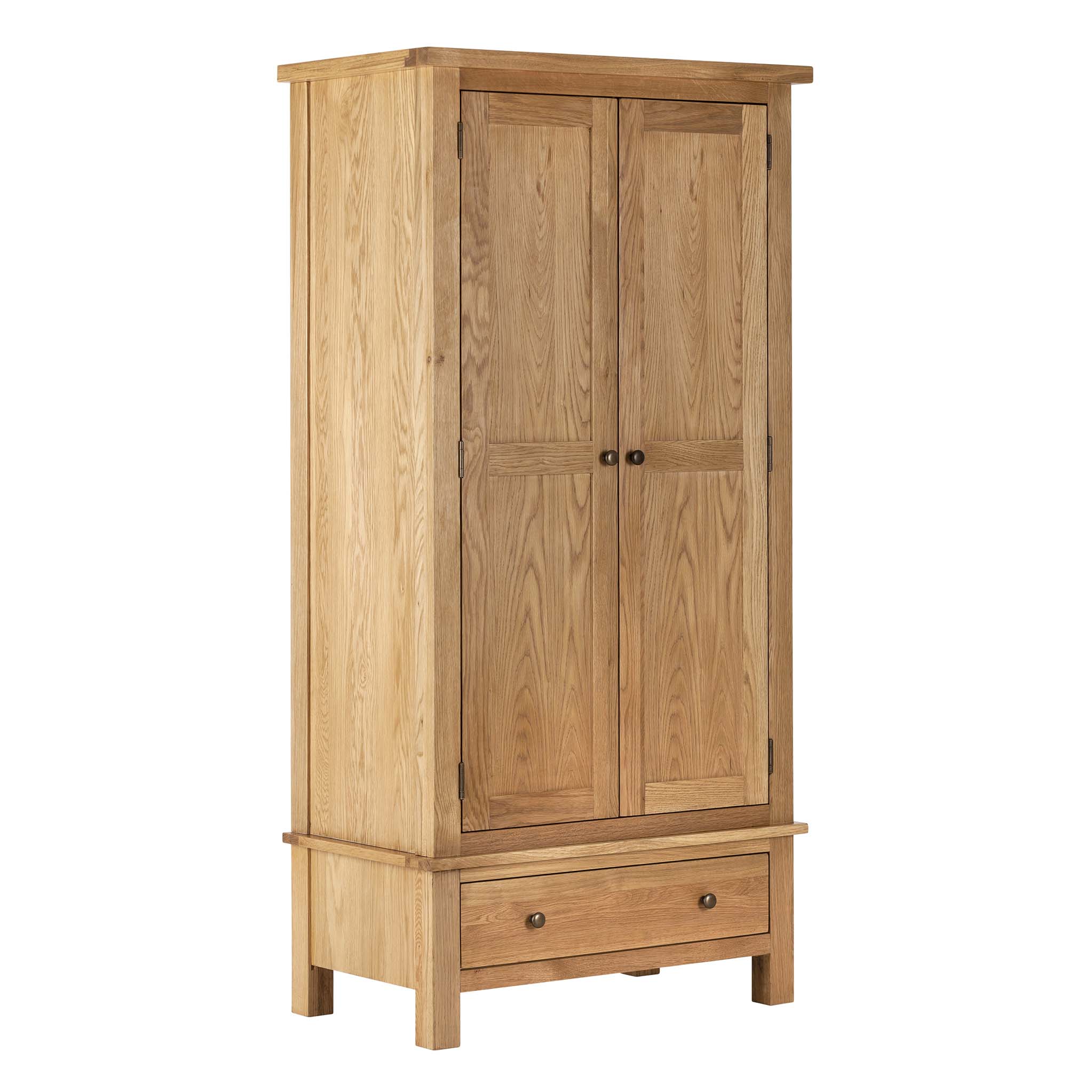 - This double wardrobe, part of our Charlestown Oak range, features a large hanging space with a deep drawer beneath.