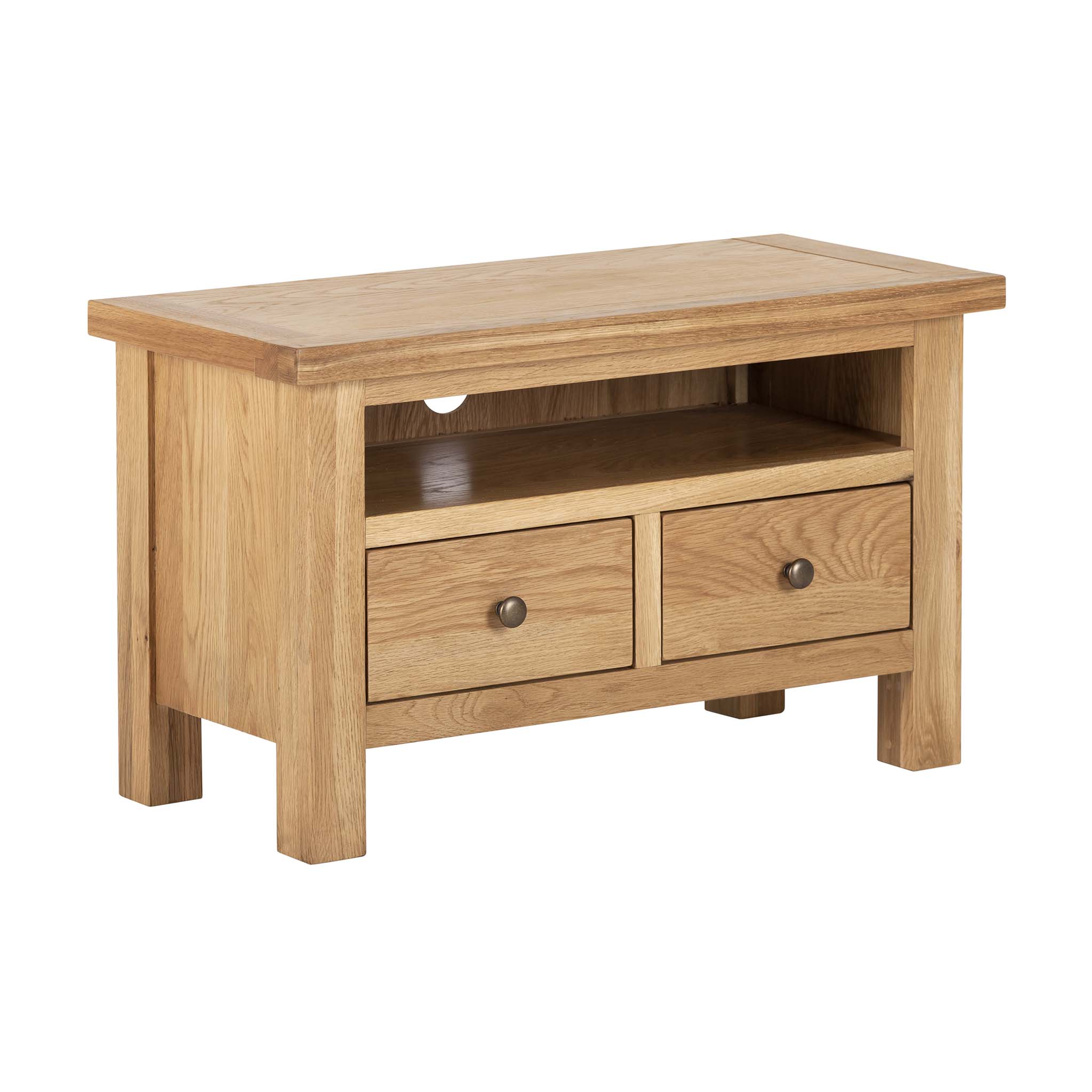 - The Charlestown Oak TV Unit, with two drawers, not only looks great, but will add some handy storage to the living room.