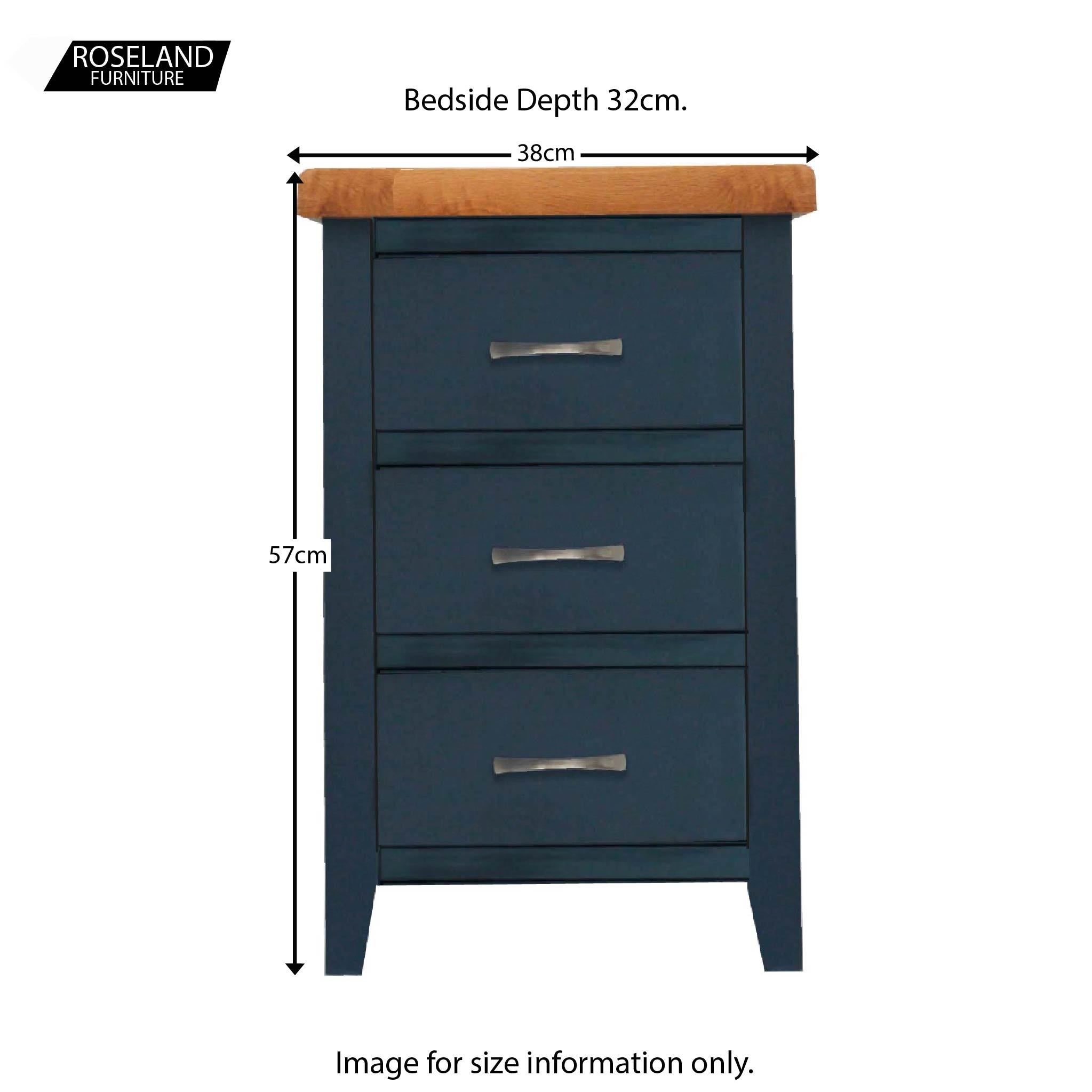 • Beautiful dark blue bedside cabinet with 3 drawers.