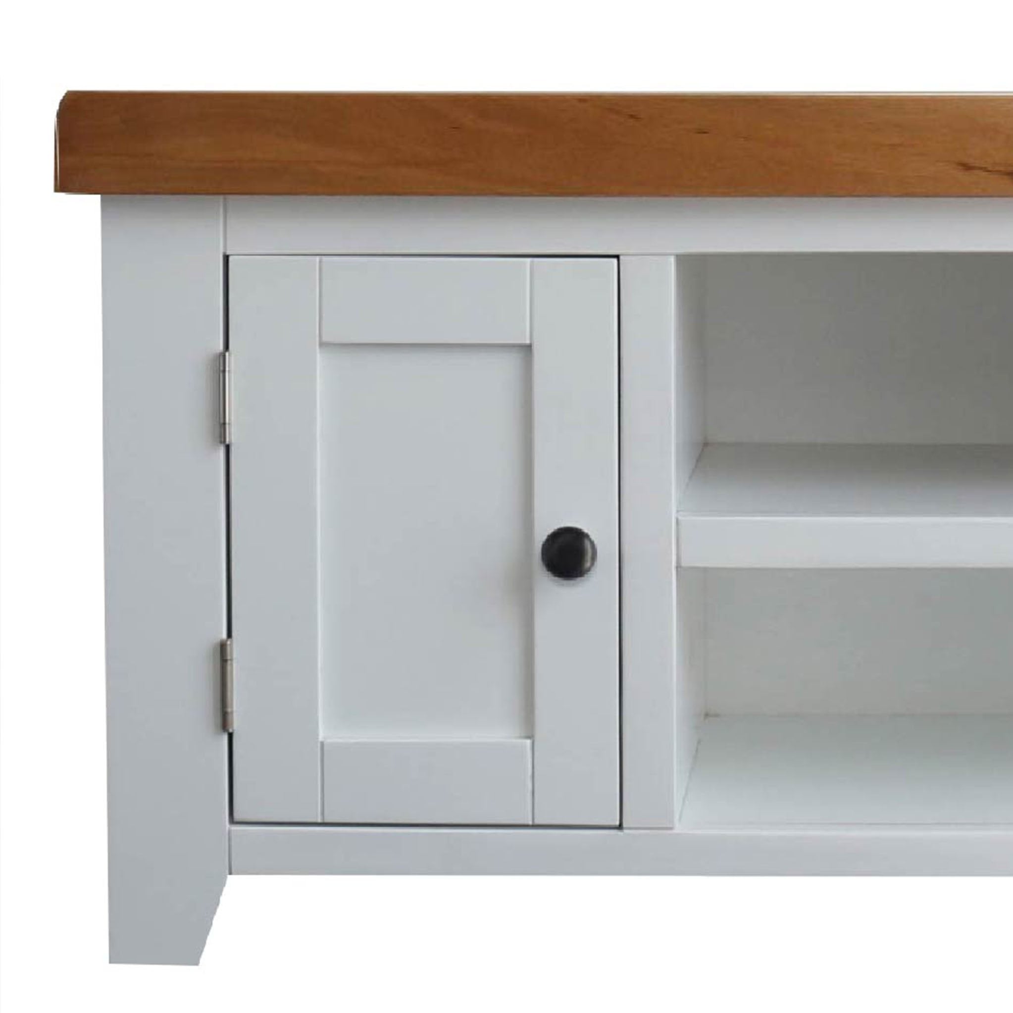 This stunning large white TV cabinet is a fantastic unit, it has 2 large cupboards for storage and 2 wide central shelves for any entertainment devices (Sky Box or Freeview player). This is certainly a unique, stylish, and functional piece of furniture.