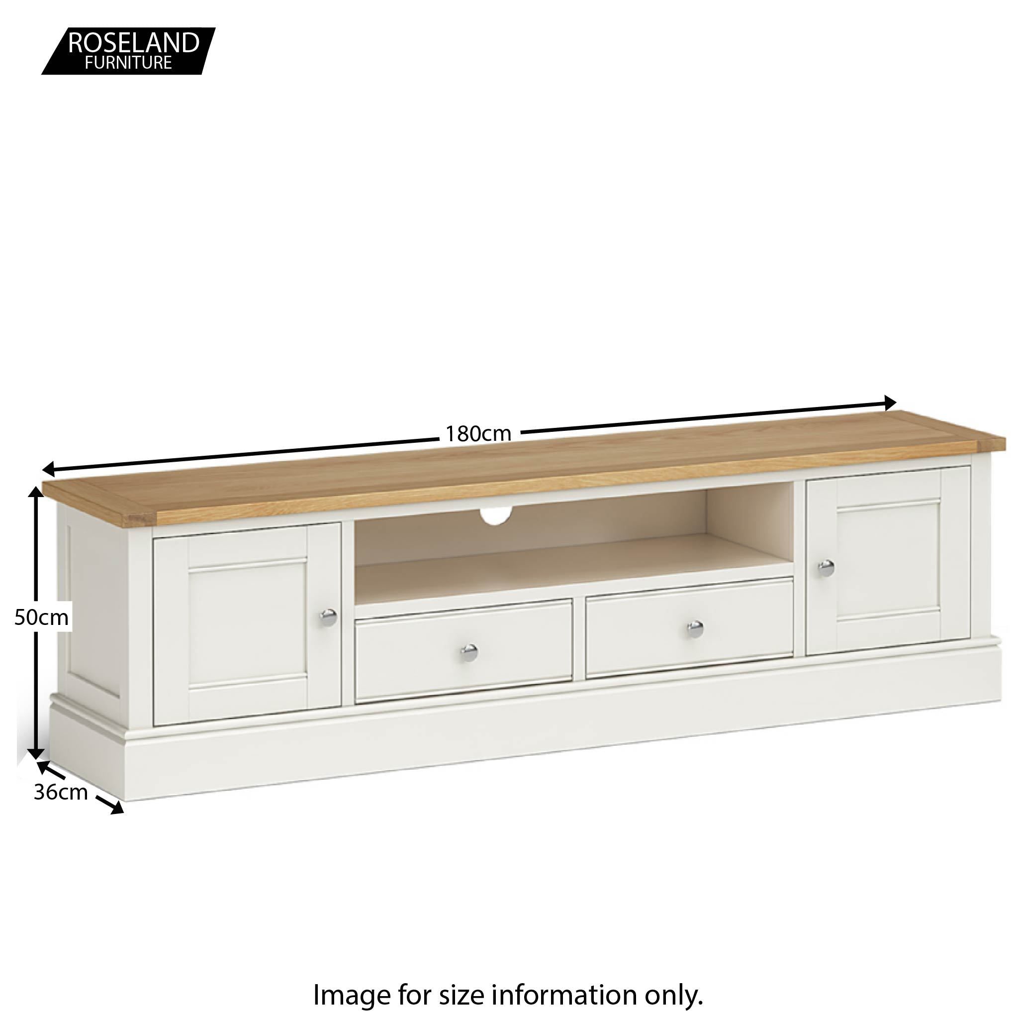 The largest of four TV stands in the Chichester Range, at 180cm wide, it's large enough for almost any TV. Whether you need the whole stand to fit your TV or you want to use the extra space for photos or ornaments, if you have the room then this is a fantastic piece of furniture.
