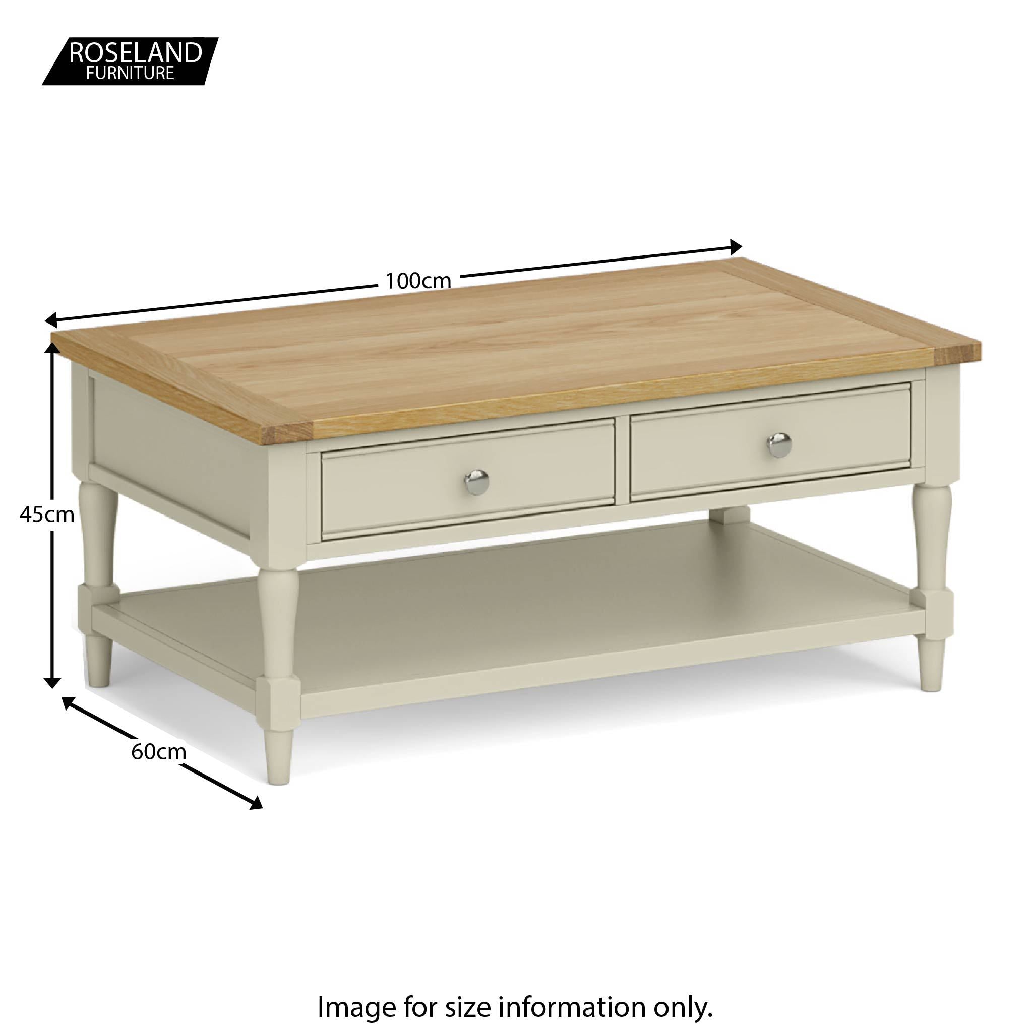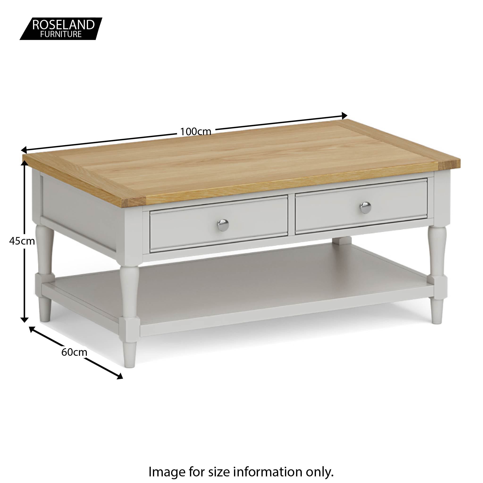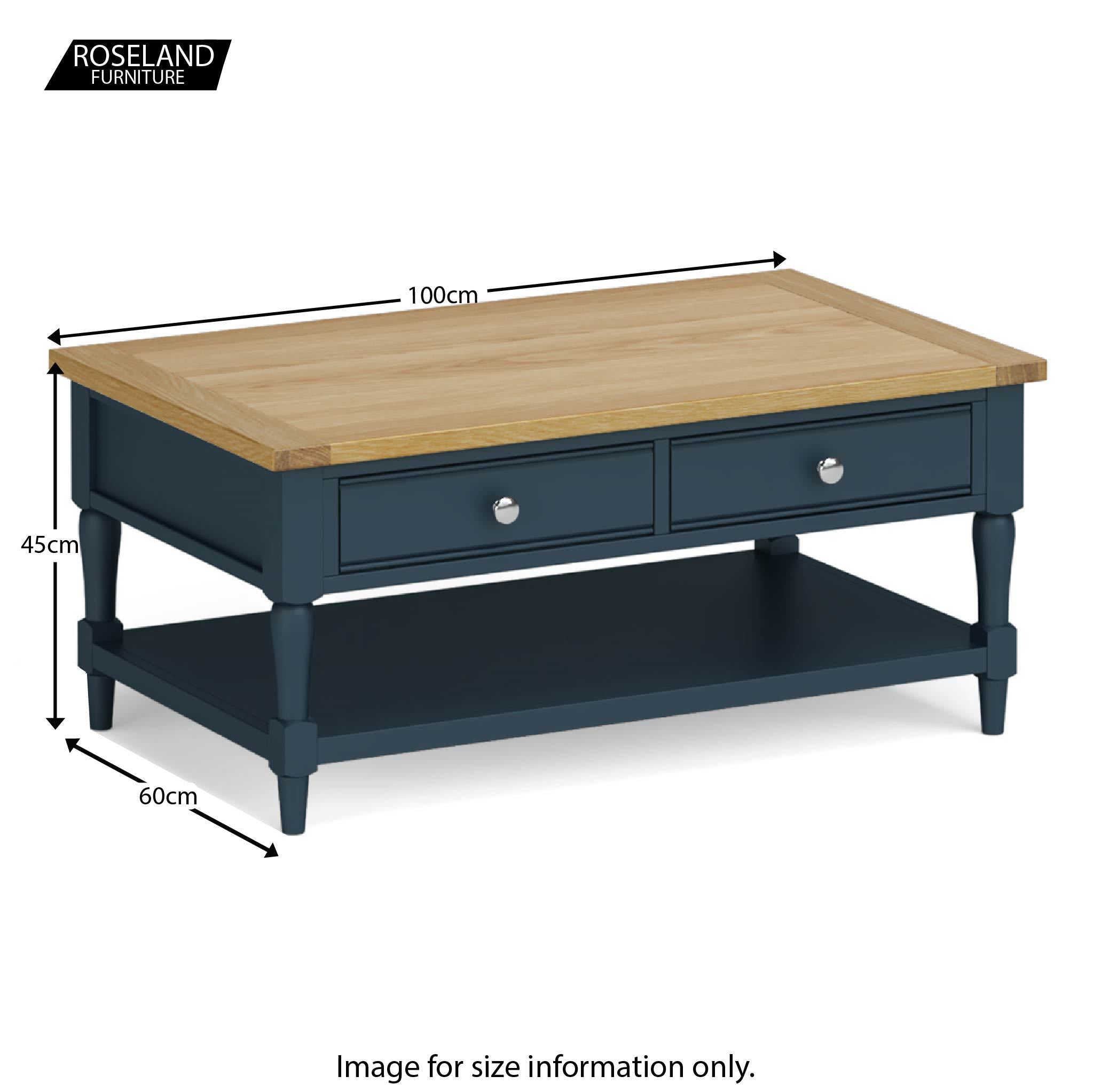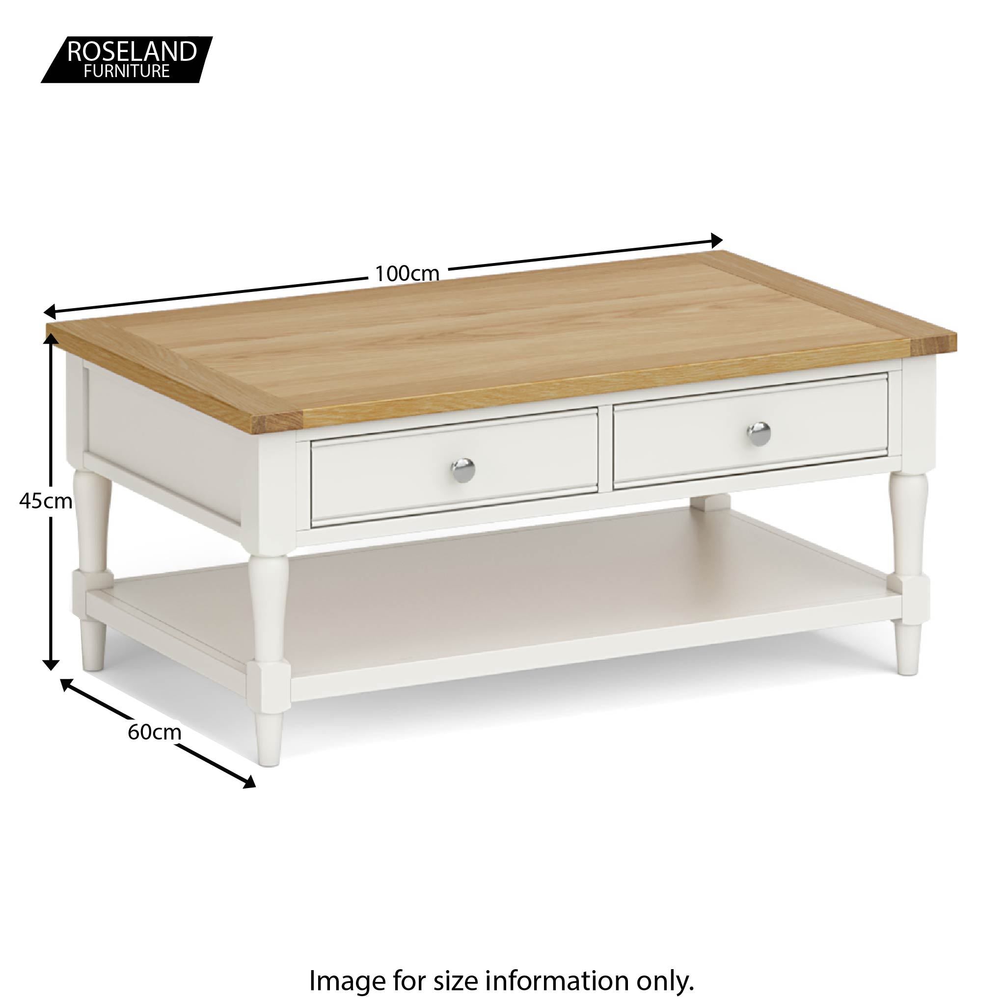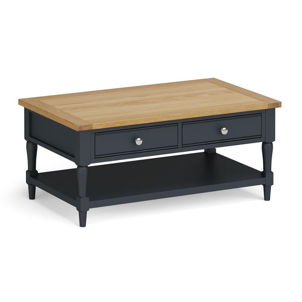A stylish mid-sized coffee table available in five gorgeous finishes. The stunning oak top is perfect for magazines, books, popping your feet on whilst you watch a movie. Featuring two spacious drawers that are accessible from either side of the table and a lower shelf providing additional storage space, there's plenty of hiding, sorry storage room available.