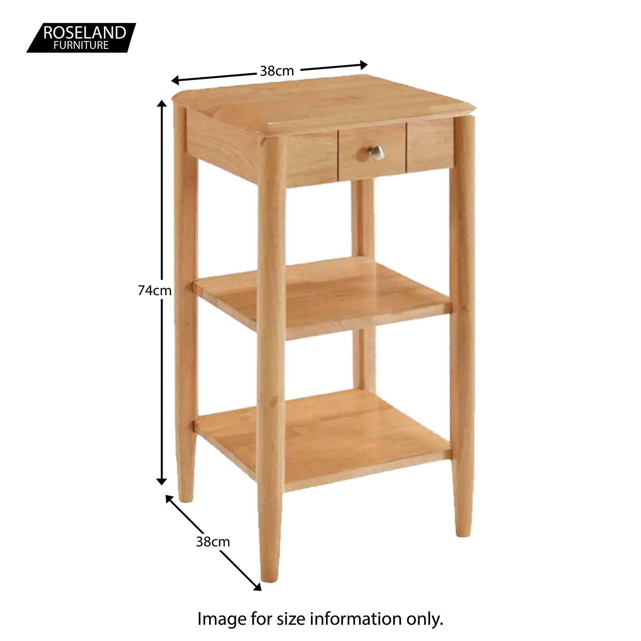A truly versatile piece, this Cologne Telephone Stand can be used all around the home. From a lamp table with shelves in the living room to a tall slender bedside table in the bedroom. This will look beautiful with a vase of freshly cut flowers on it, or with your favourite photo frame on it. The single drawer provides a great little space to keep keys or that small item safe while the 2 large shelves beneath makes great display areas.