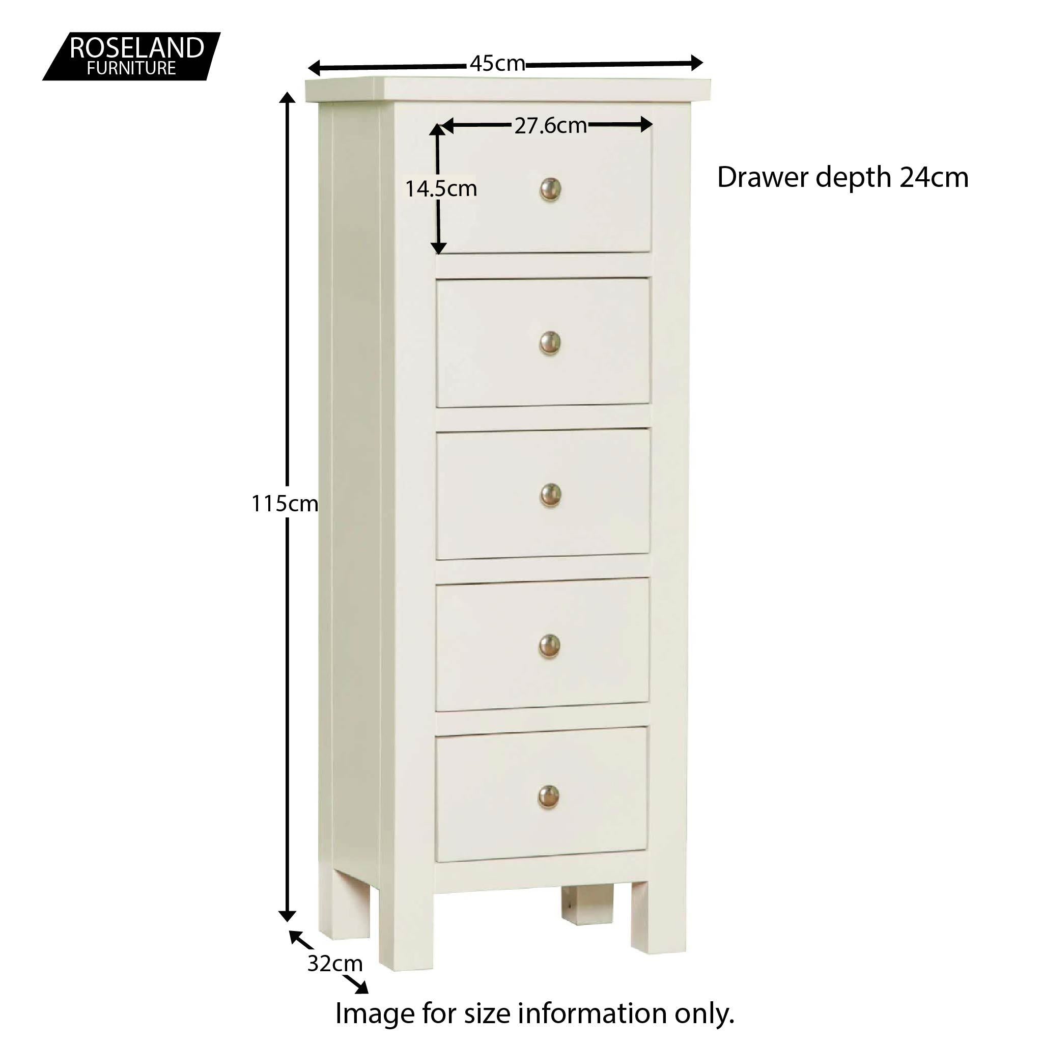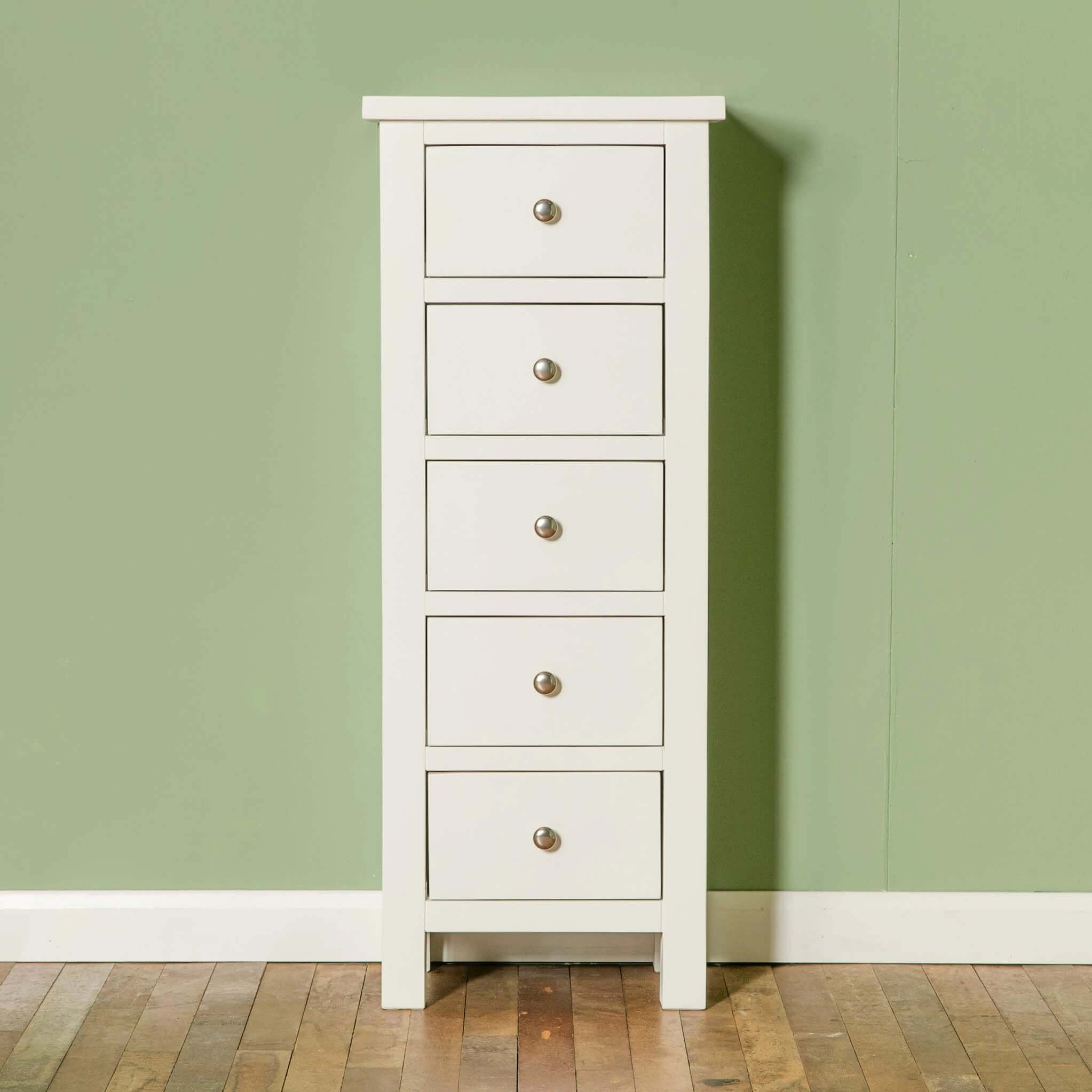 - The Cornish White 5 Drawer Tallboy is a stylish piece, which brings a good amount of storage with it.
