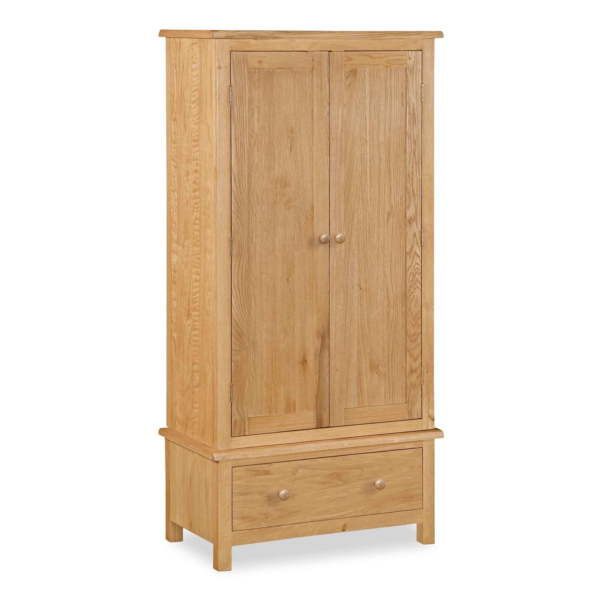 This Cotswold double gents oak wardrobe is handmade from high quality oak. Plenty of space within makes it perfect for if you needing hanging room. The large deep drawer at the bottom is practical additional storage. The rounded edges of each piece gives the room an impressive country look that only adds to the charm. If you are looking to find another item to perfectly match this wardrobe, view our wide range of rustic oak bedroom items all of which exclusively compliment each other.