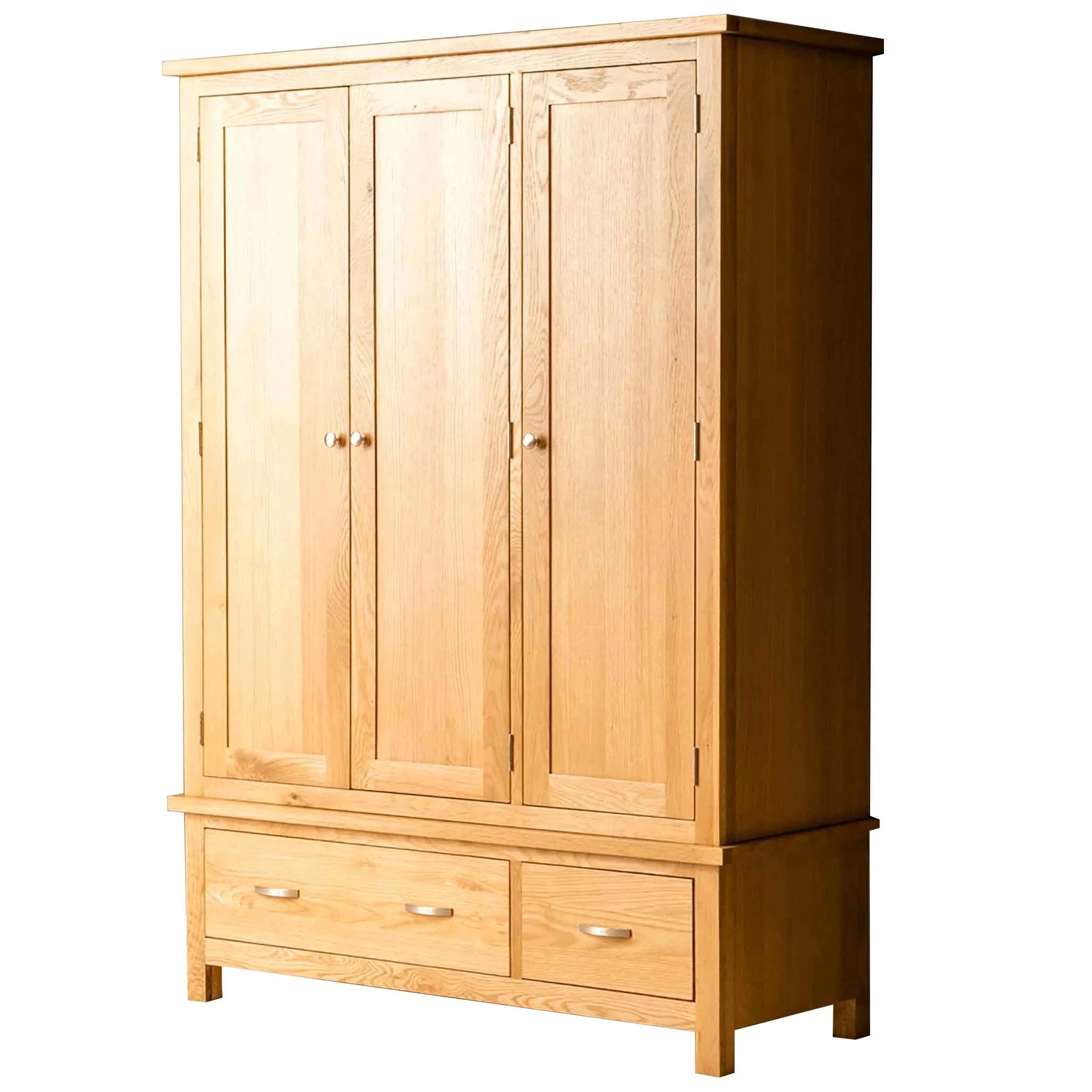 - This light oak triple wardrobe provides plenty of hanging space.