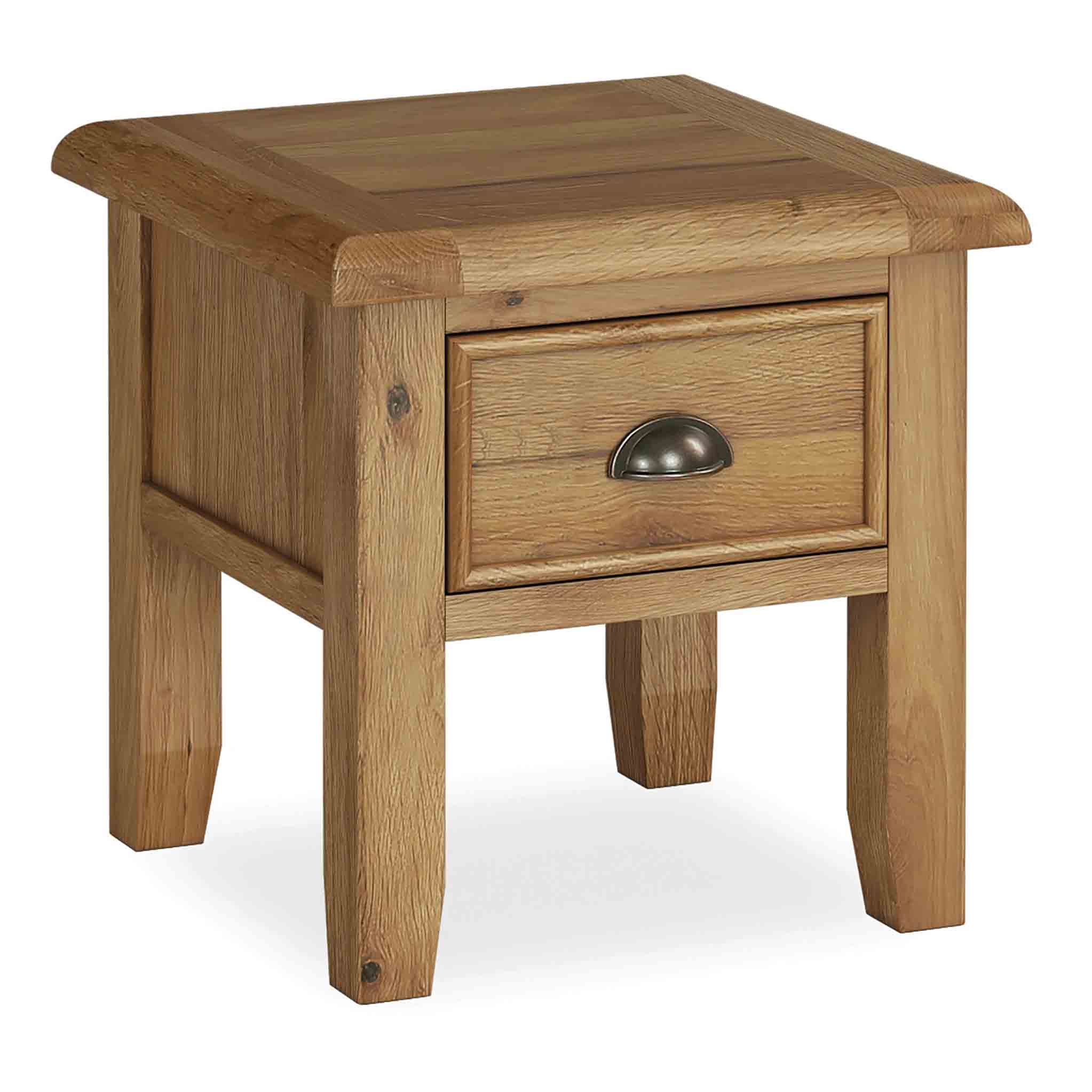 This Canterbury oak lamp table is an ideal addition to any living area. Perfect for the living room as an additional coffee table or lamp table this item is handmade from high quality oak. The rounded edges of each piece gives the room an impressive country look that only adds to the rustic charm. There are many more rustic oak items within the Canterbury range that compliment each other so please take a look around our shop.