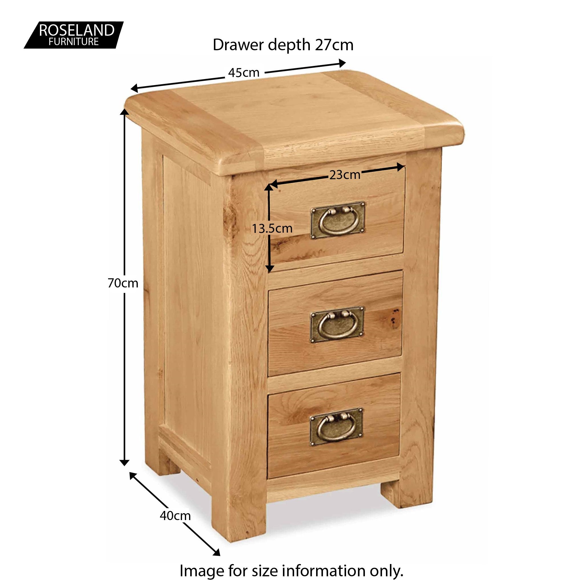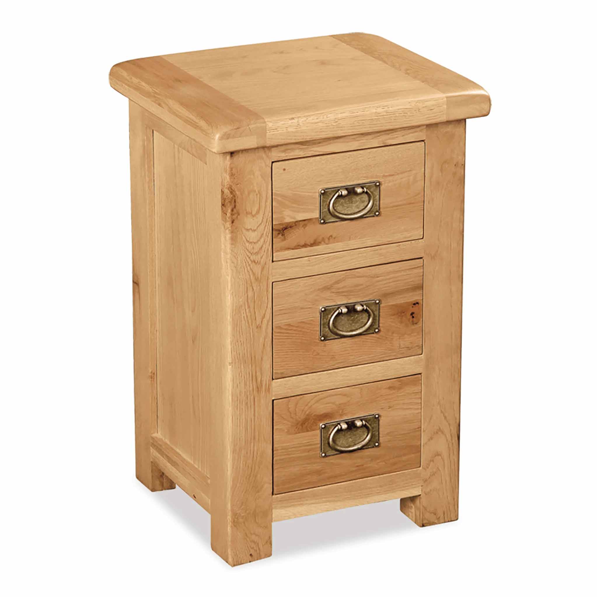 Our Zelah large chunky oak bedside table is beautifully built with 3 drawers and very well finished. Handmade from high-quality oak, the Zelah range adds a rustic touch to the bedroom. The rounded edges of each piece give the room an impressive country look that only adds to the charm.